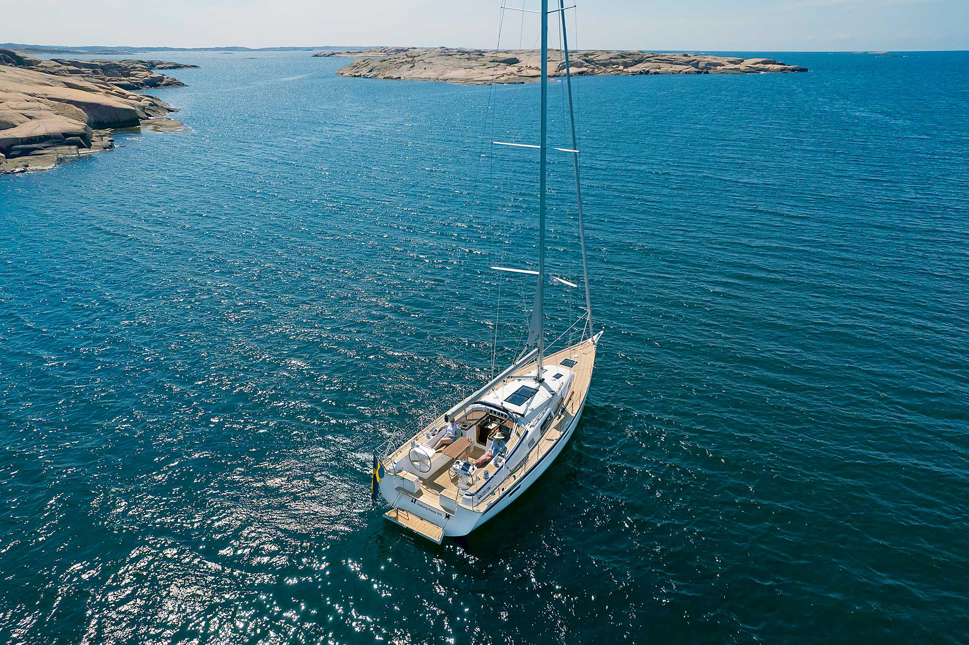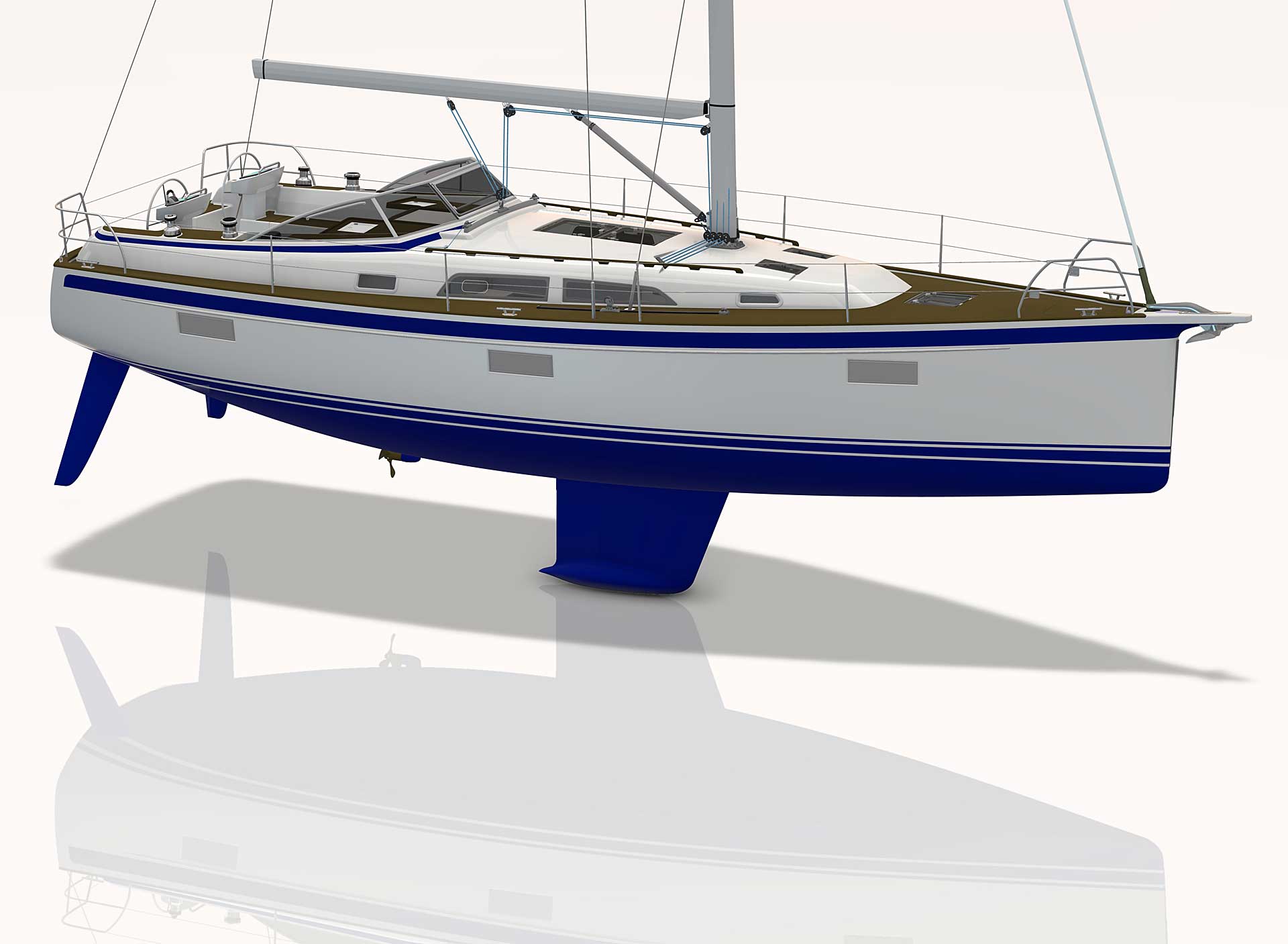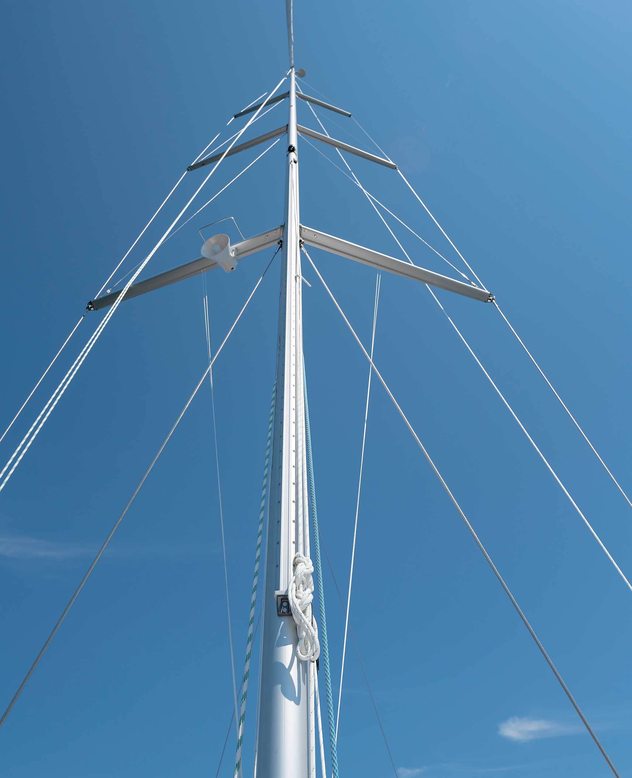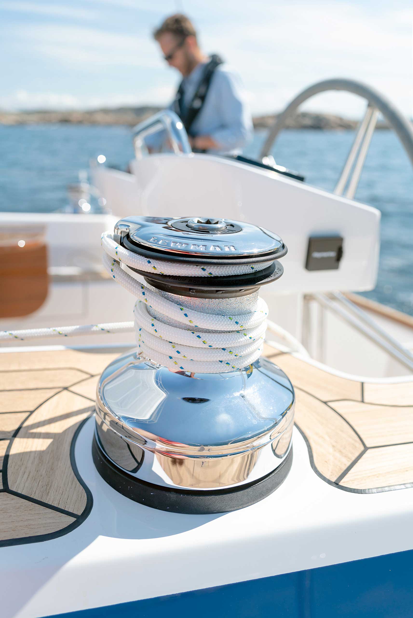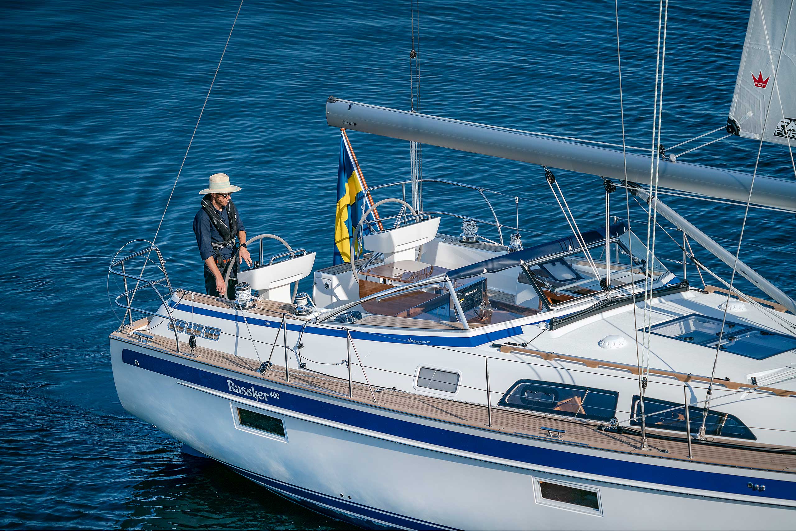 The rig is modern and easy to handle. The headsail is only slightly overlapping and easy to tack and there is a self tacking option too. The bowsprit is elegantly integrated with the hull and deck as standard, not an afterthought. The bowsprit is an excellent tack point for a gennaker, a mount for a bow ladder with platform and stowage for an Ultra bow anchor.