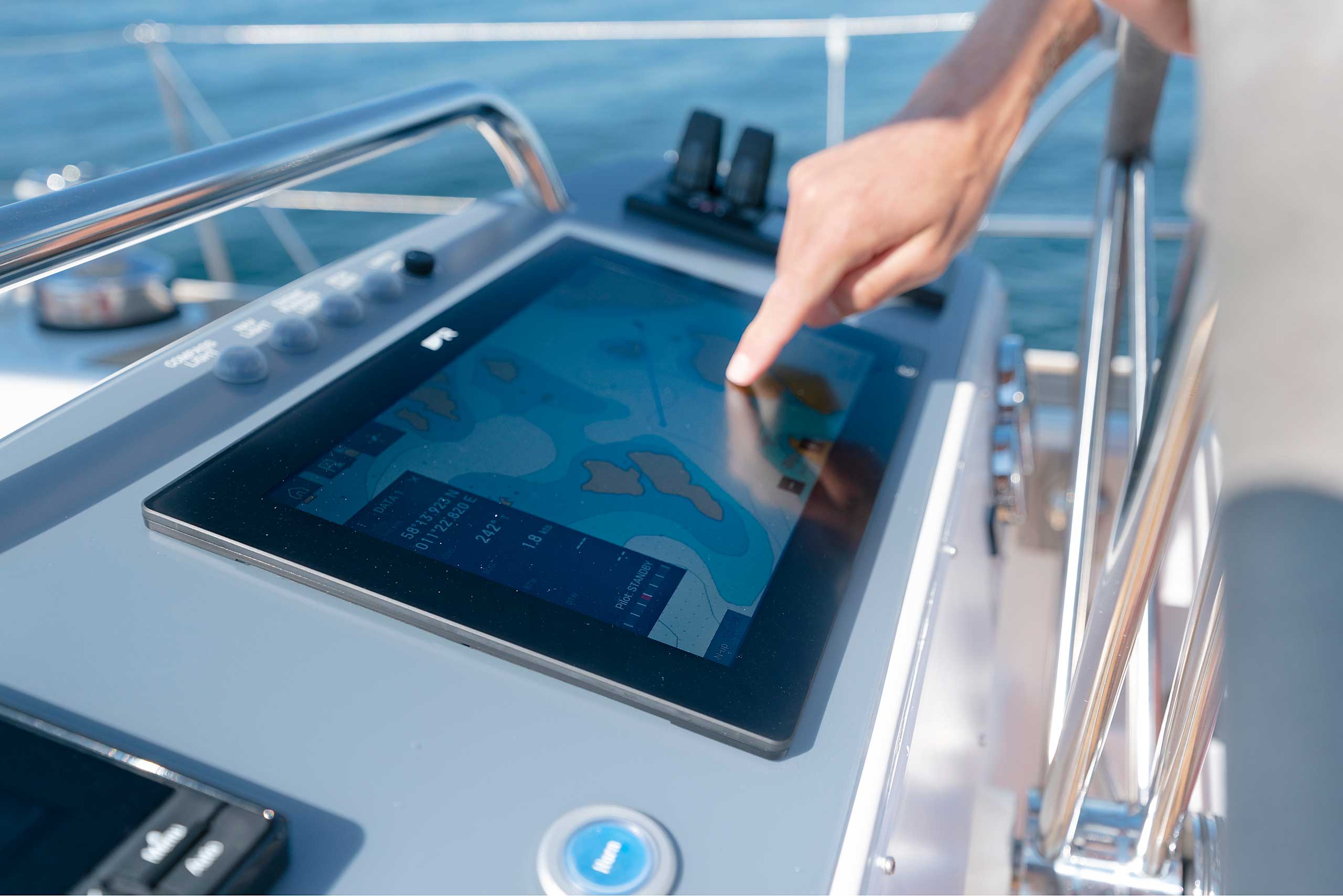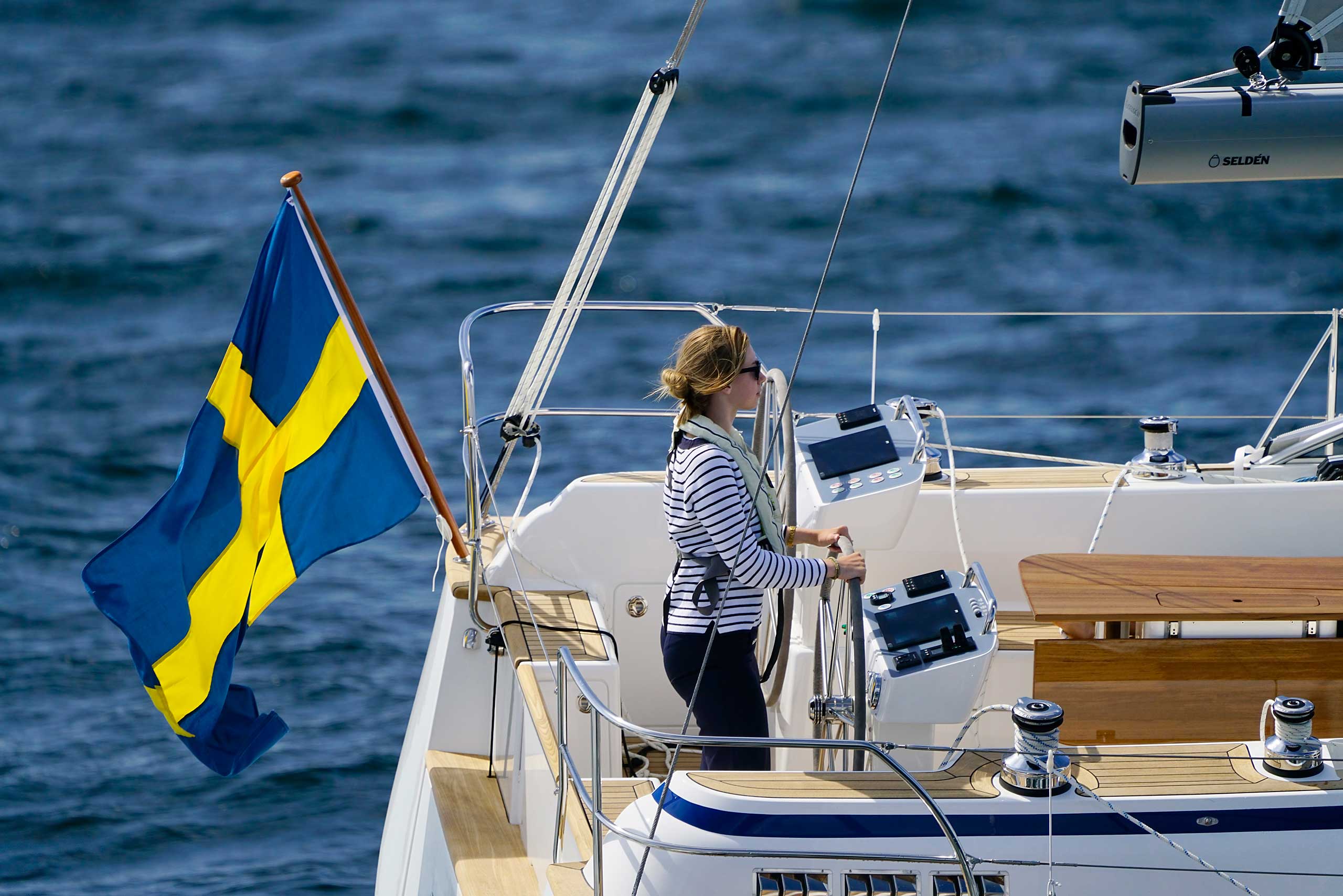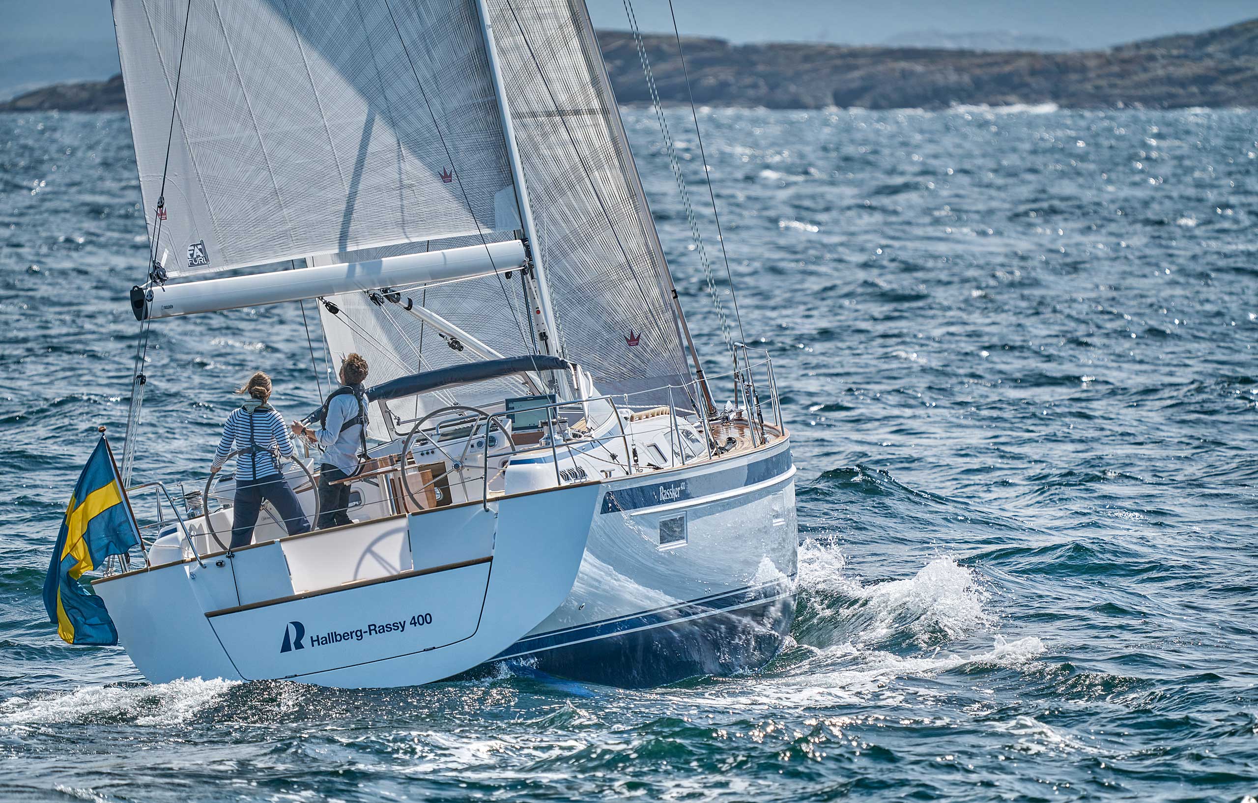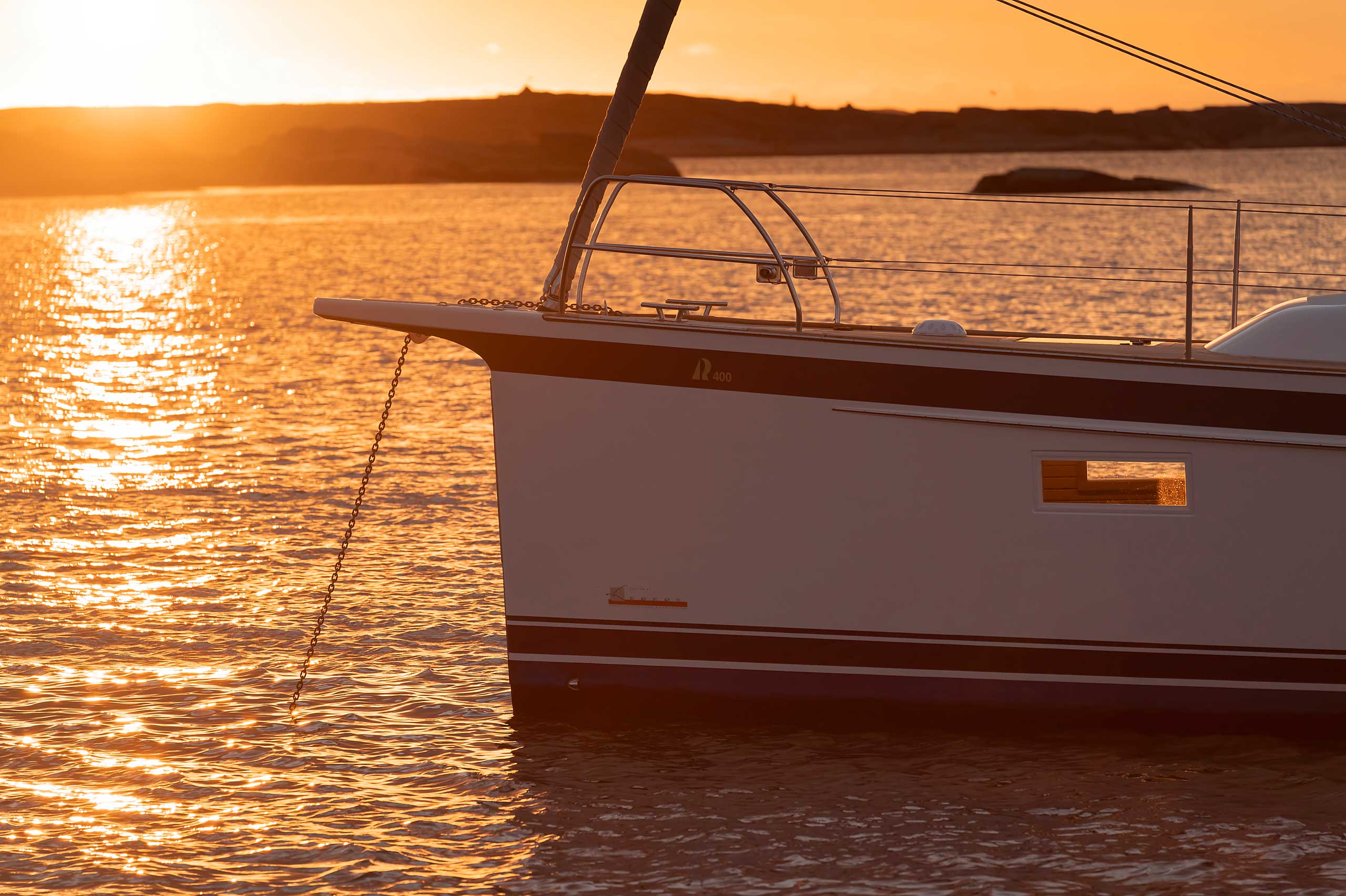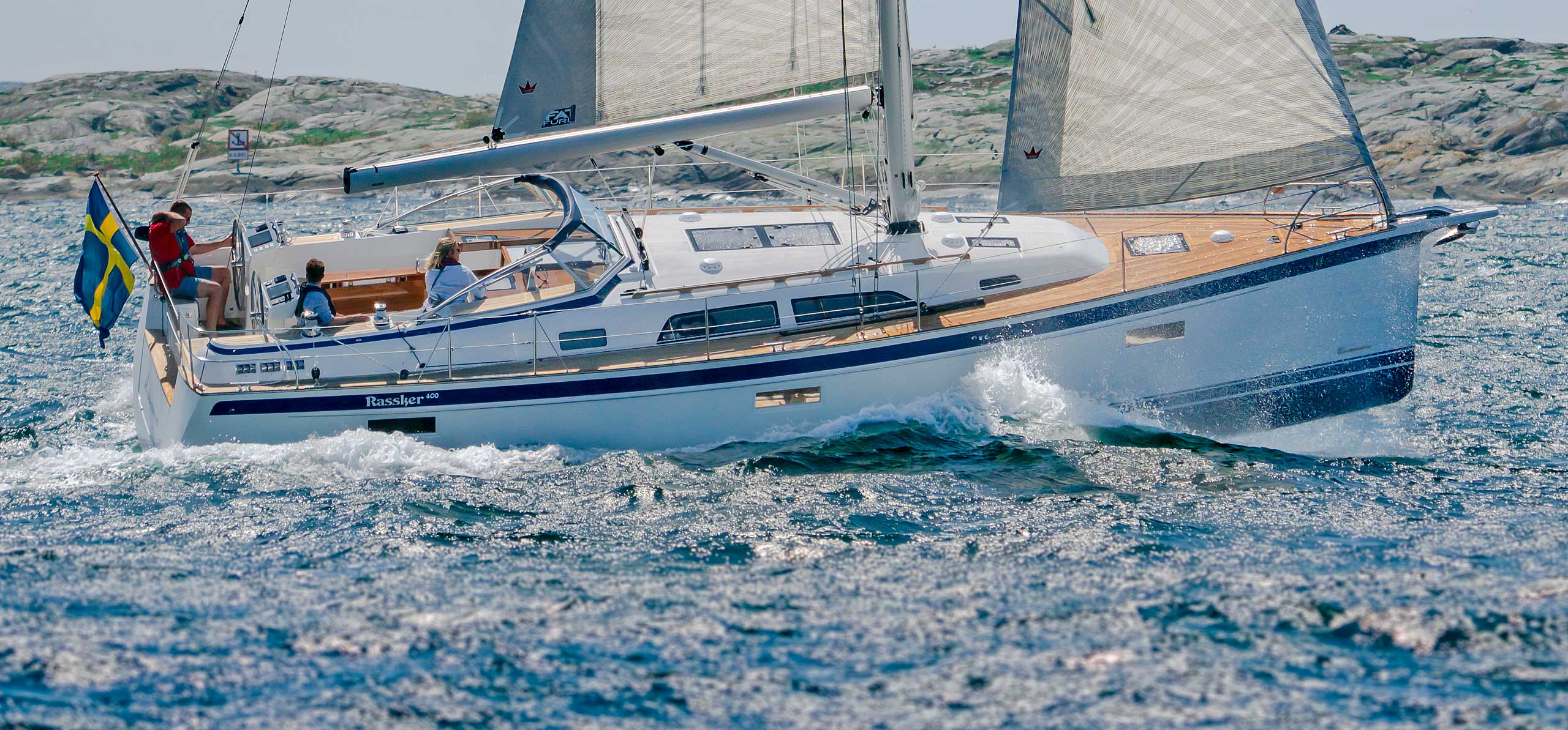 The rig is modern and easy to handle. The headsail is only slightly overlapping and easy to tack and there is a self tacking option too. The bowsprit is elegantly integrated with the hull and deck as standard, not an afterthought. The bowsprit is an excellent tack point for a gennaker, a mount for a bow ladder with platform and stowage for an Ultra bow anchor.