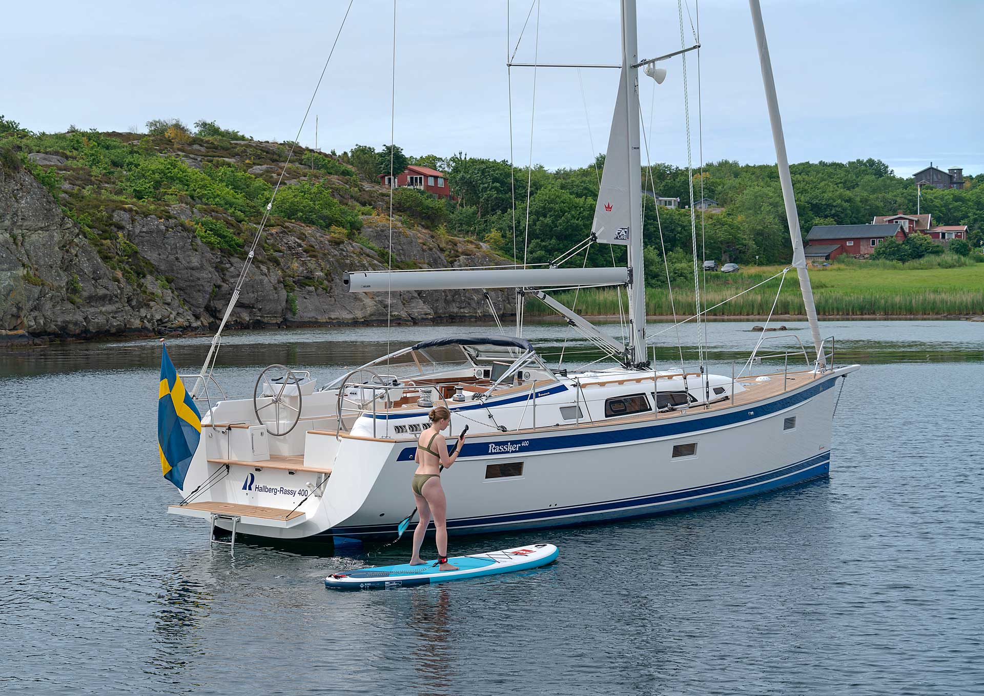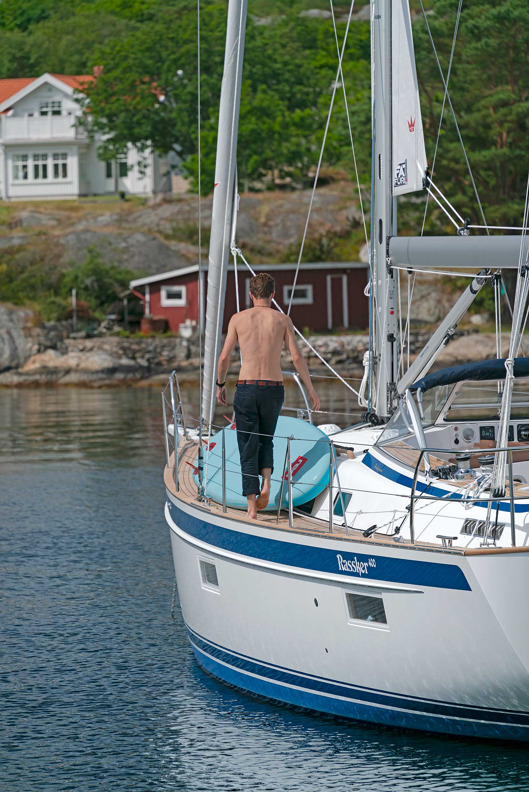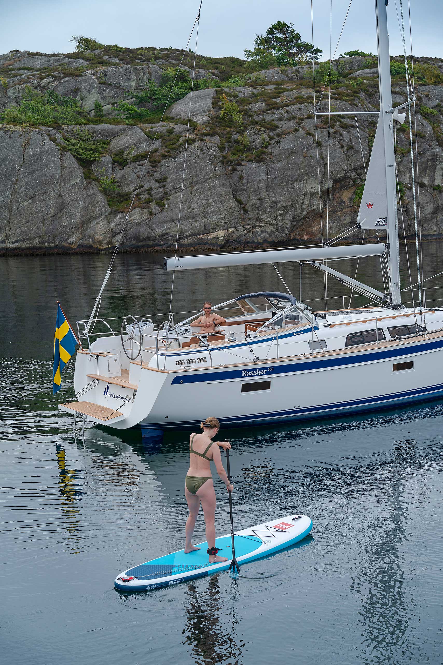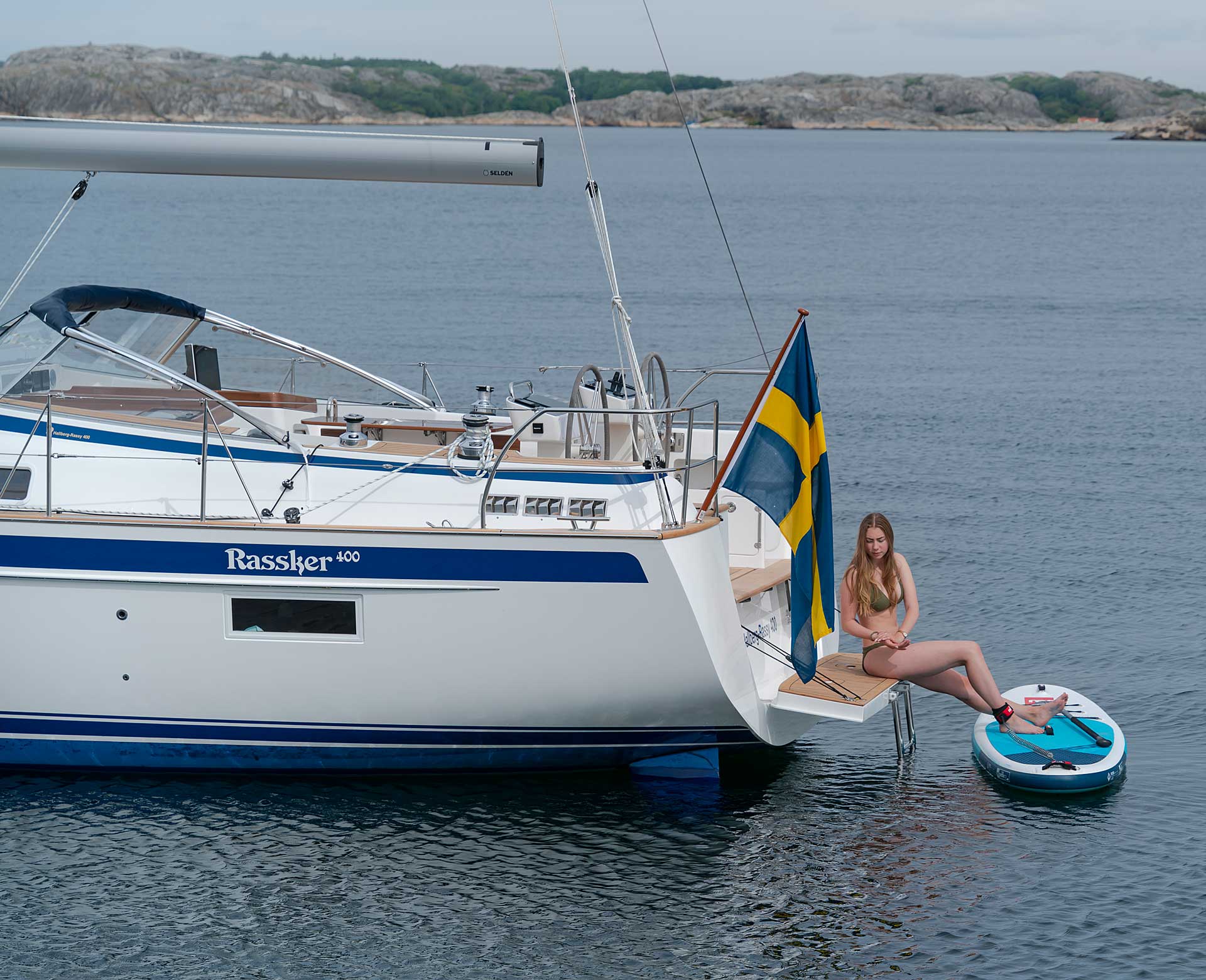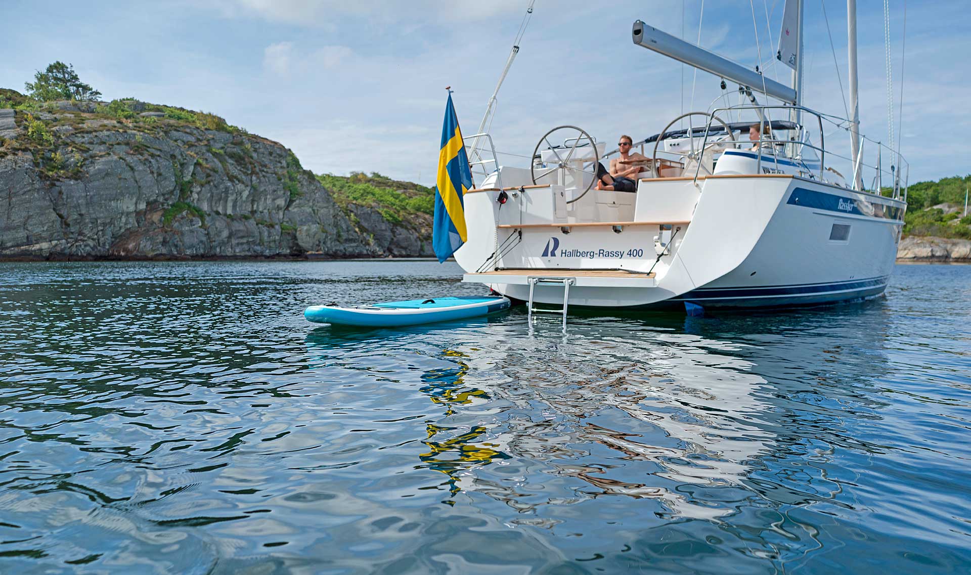 The rig is modern and easy to handle. The headsail is only slightly overlapping and easy to tack and there is a self tacking option too. The bowsprit is elegantly integrated with the hull and deck as standard, not an afterthought. The bowsprit is an excellent tack point for a gennaker, a mount for a bow ladder with platform and stowage for an Ultra bow anchor.