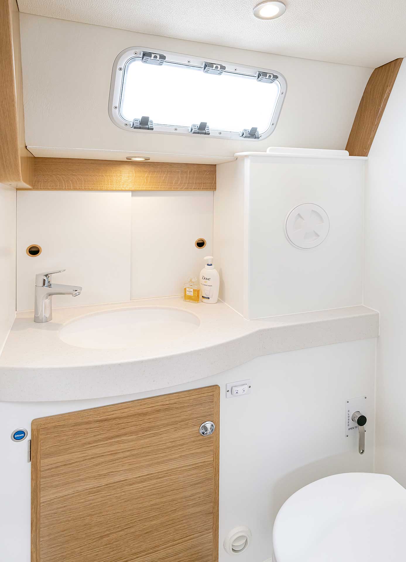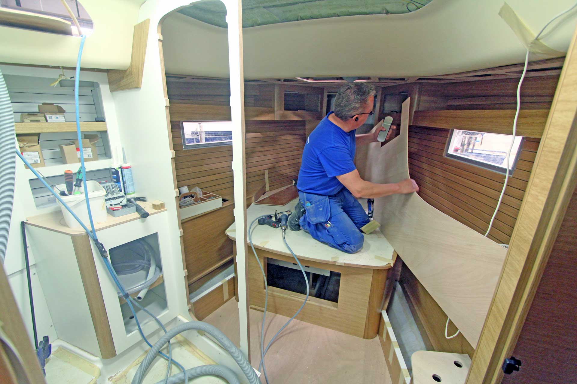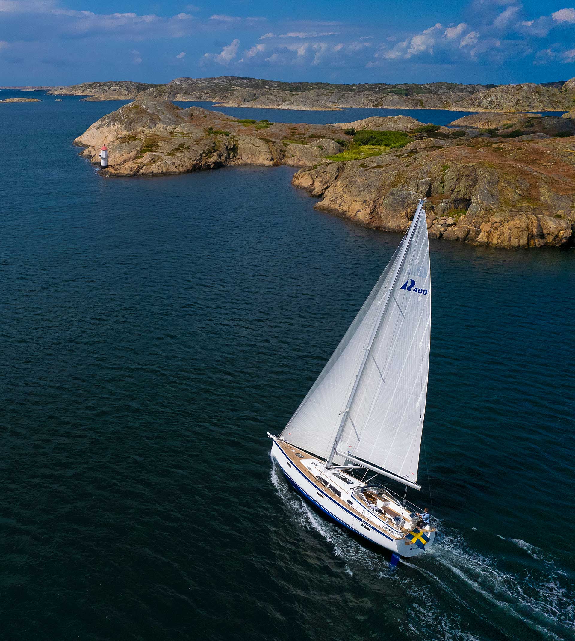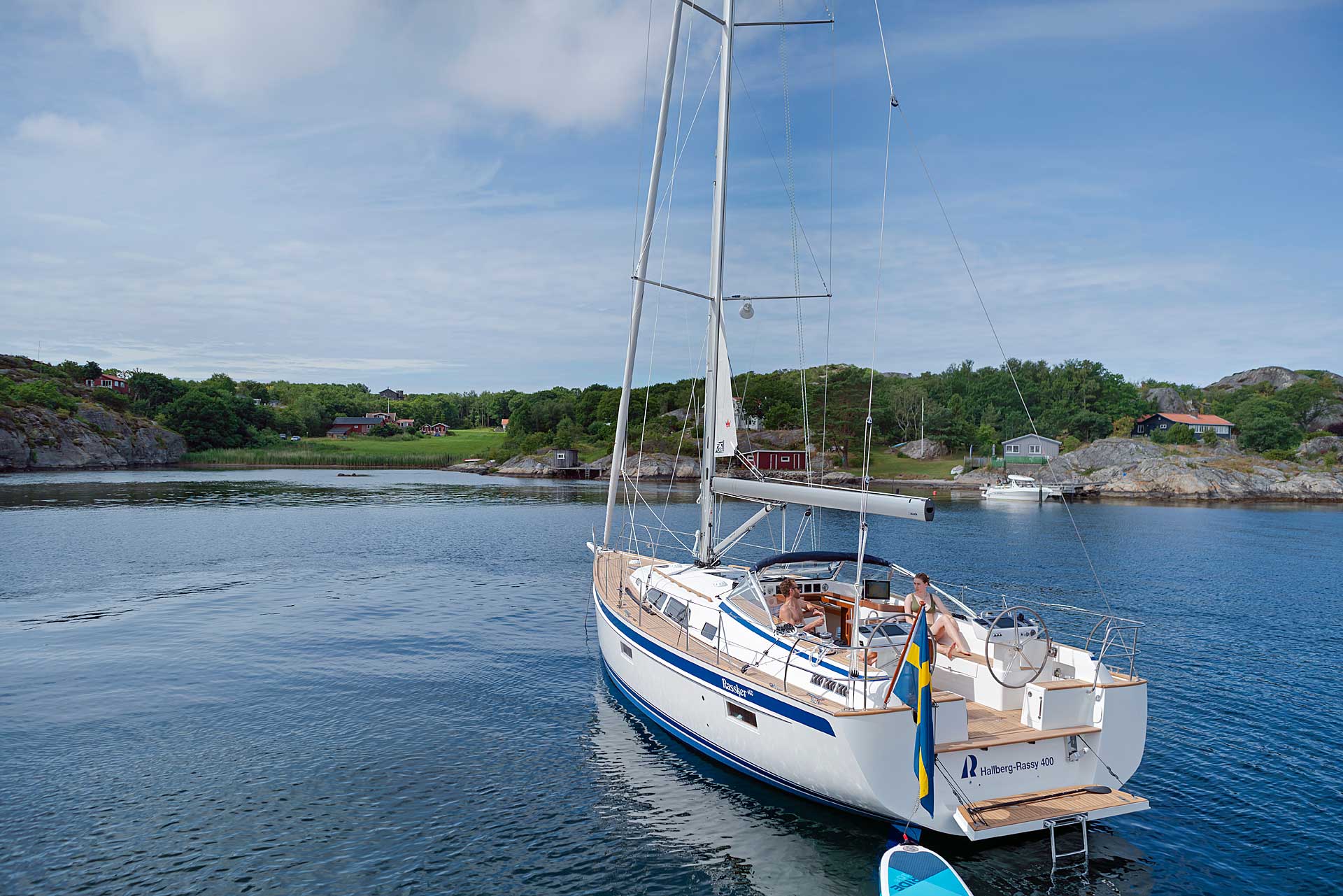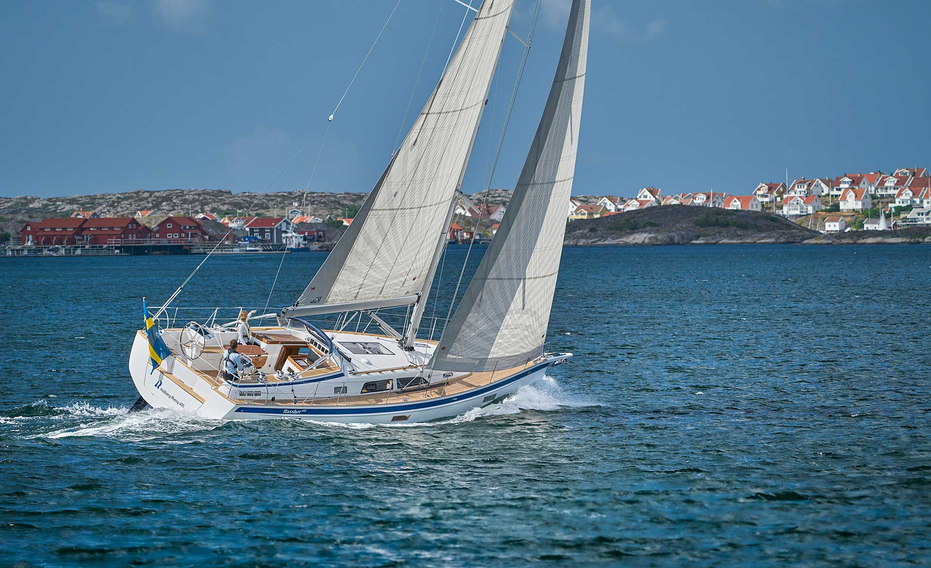 Although she is "just" 40 ft, she offers one or two heads, and two or three sleeping cabins. The forward cabin may be ordered in three different layouts: