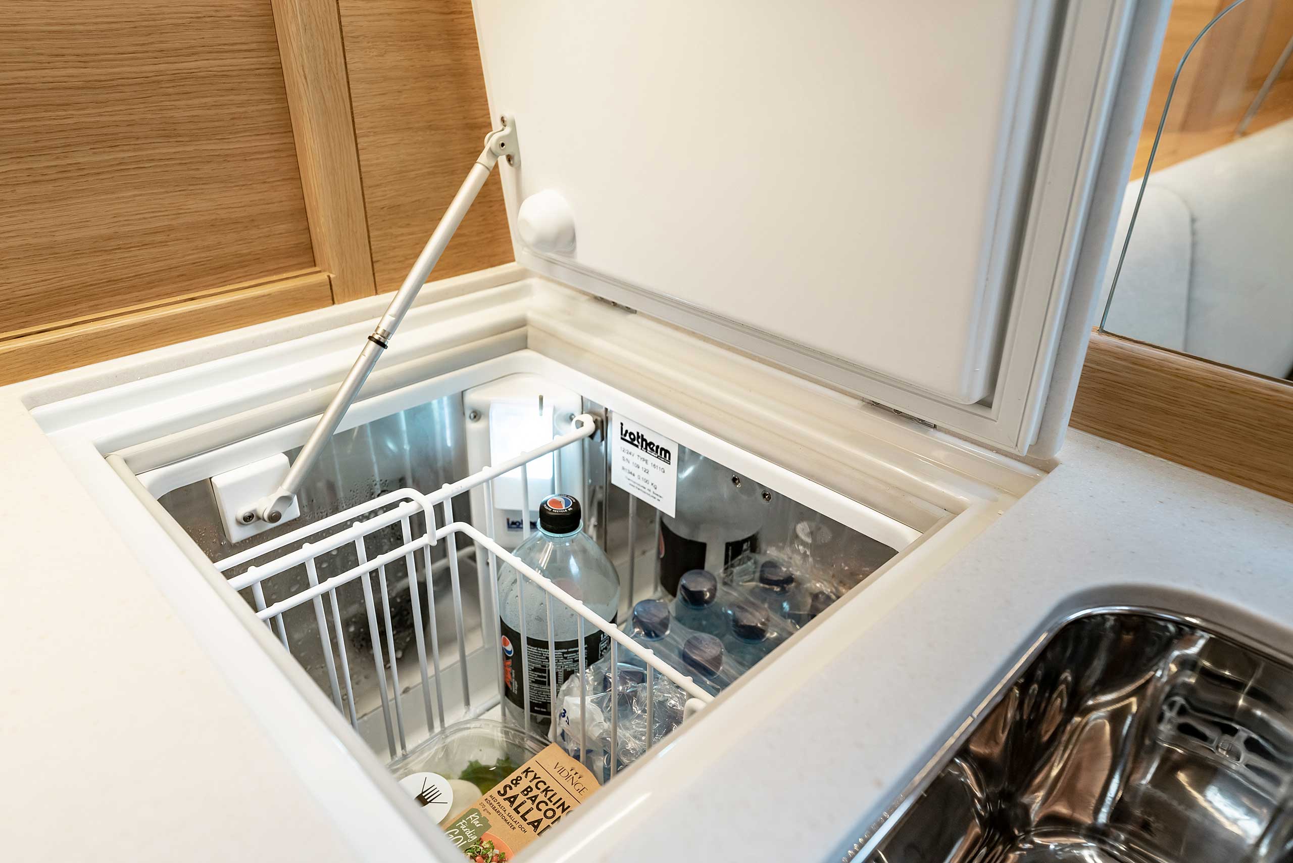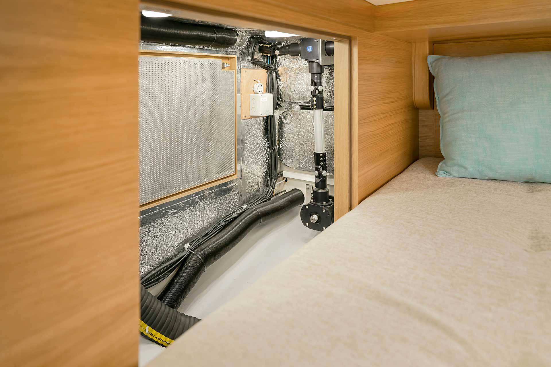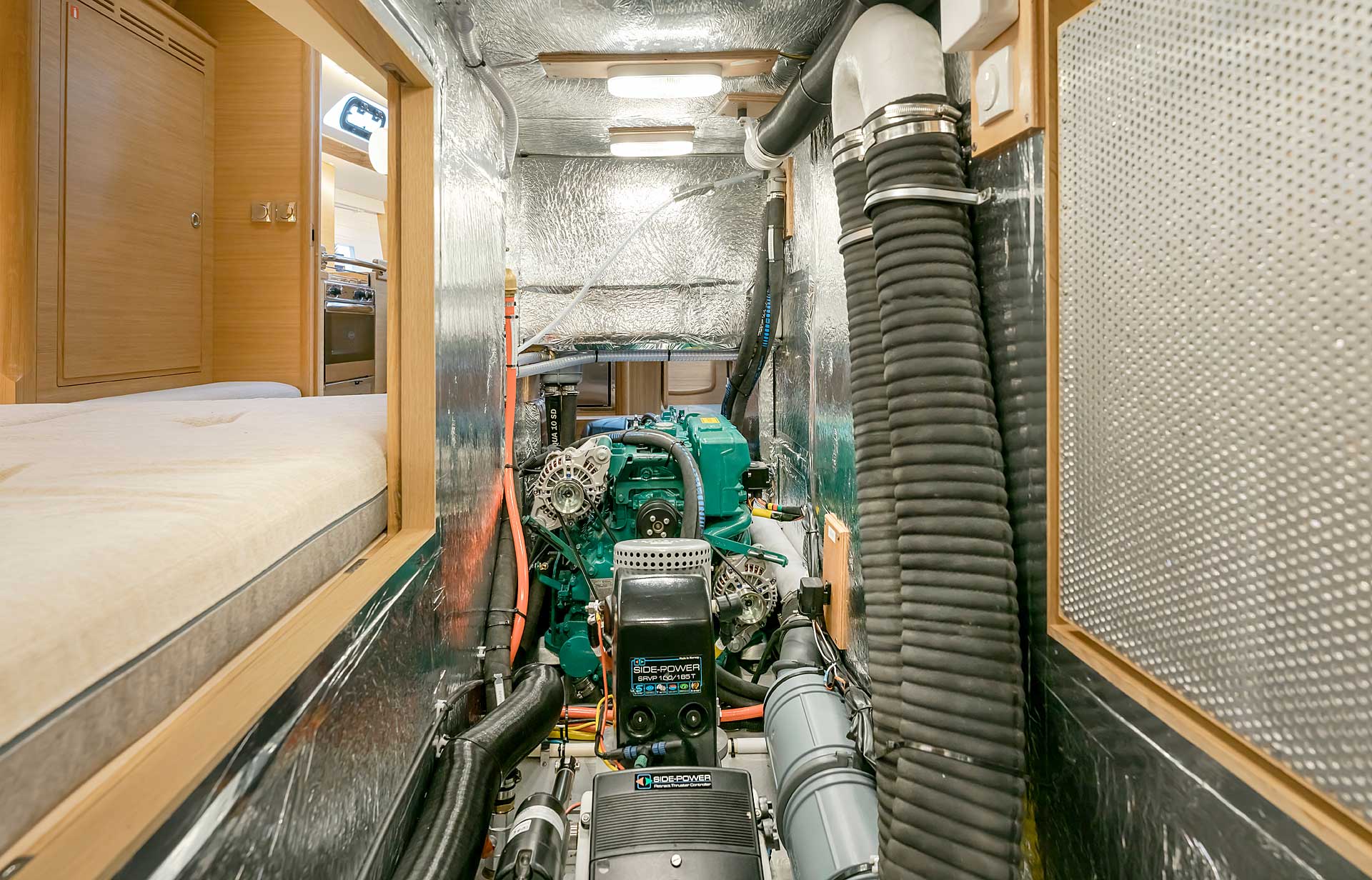 Comfort equipment is available, such as bow- and stern thrusters, and this may be combined with a generator. There are other comfort options such as washing machine, dish washer, or an extra fridge and freezer. Air conditioner and watermaker are also possible.
