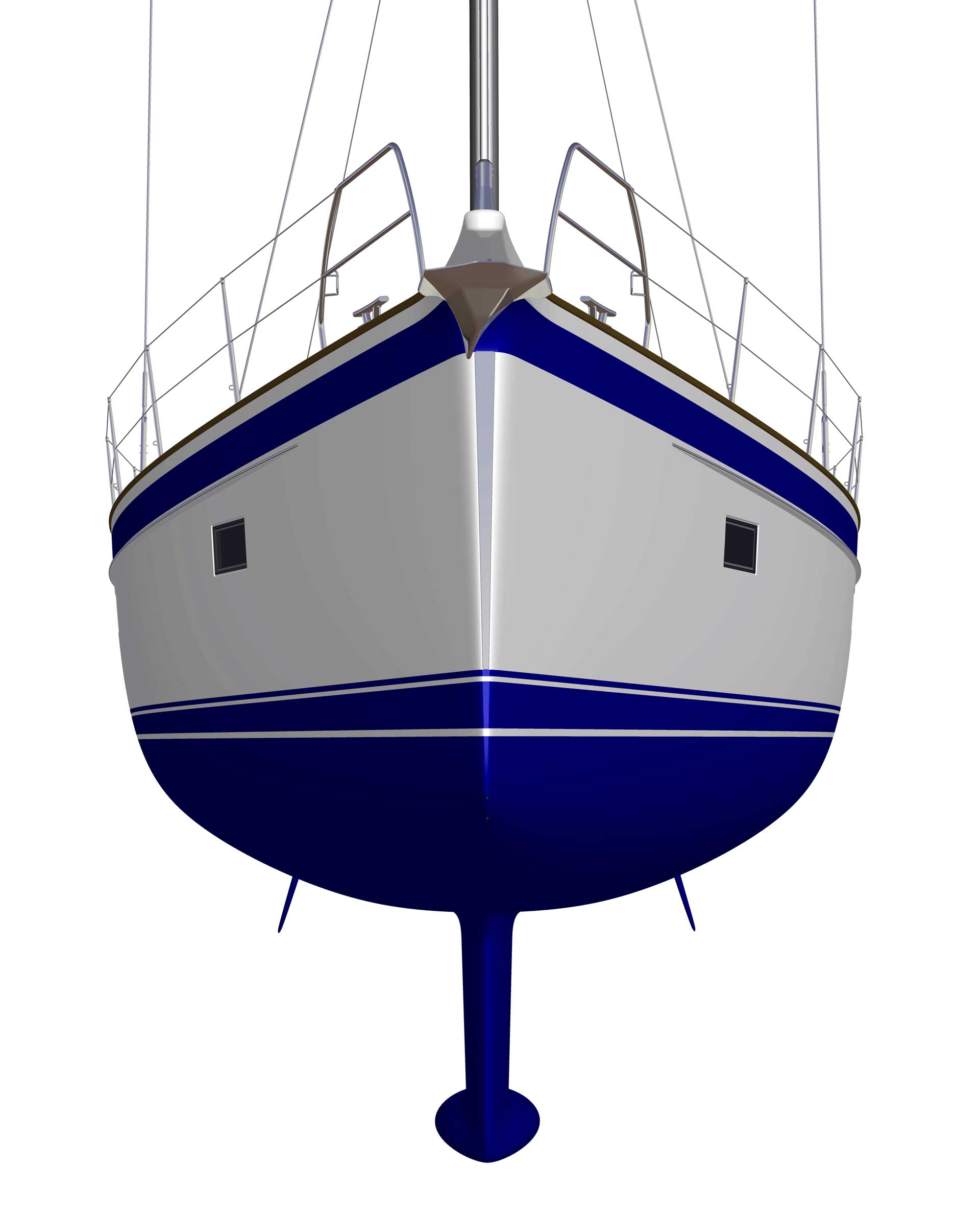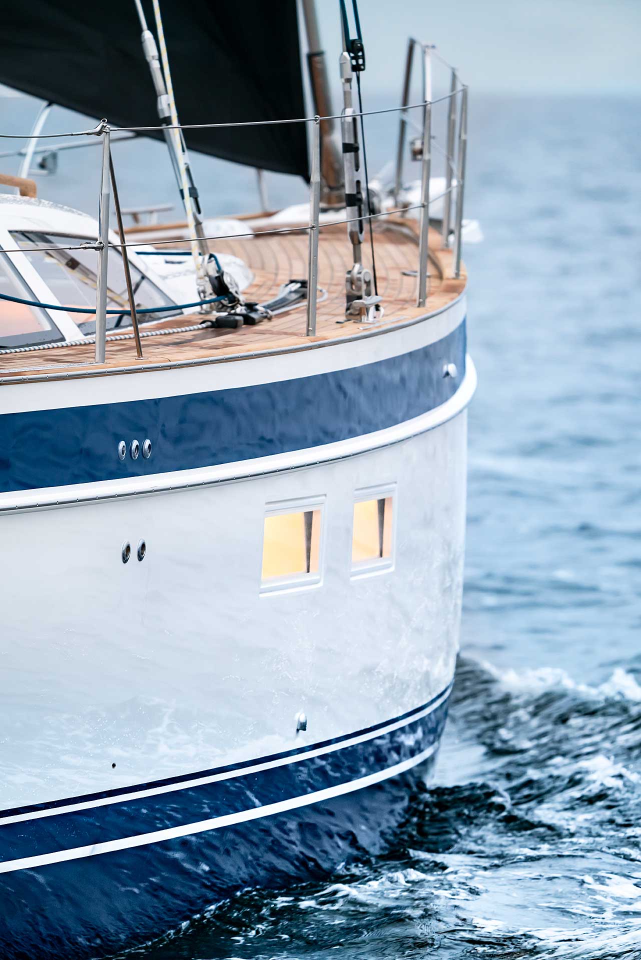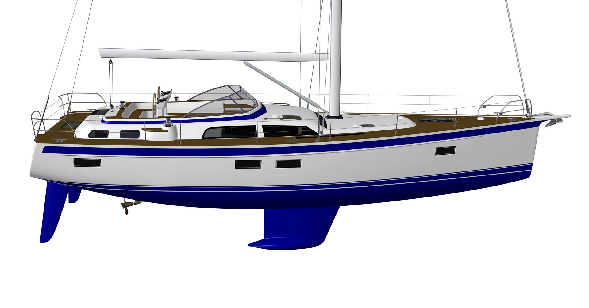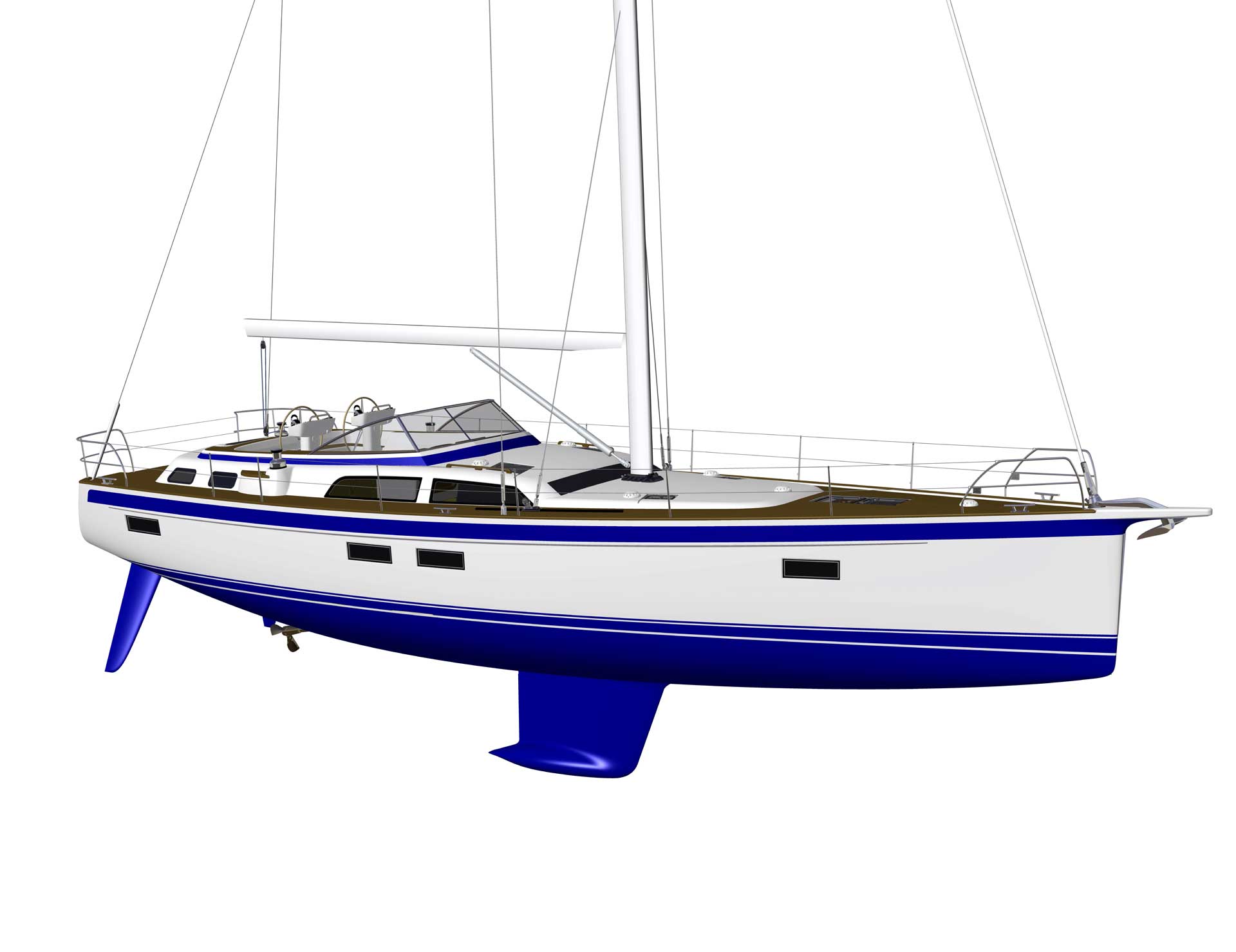 The modern and most efficient hull shape gives superior sailing performance. At the same time, the forward under water part of the hull is rounded, almost like an egg, and this means soft motion in a seaway at any angle of heel. The displacement of the hull is designed to carry all modern comfort equipment and lots of personal belongings, as well as generous tank capacity.