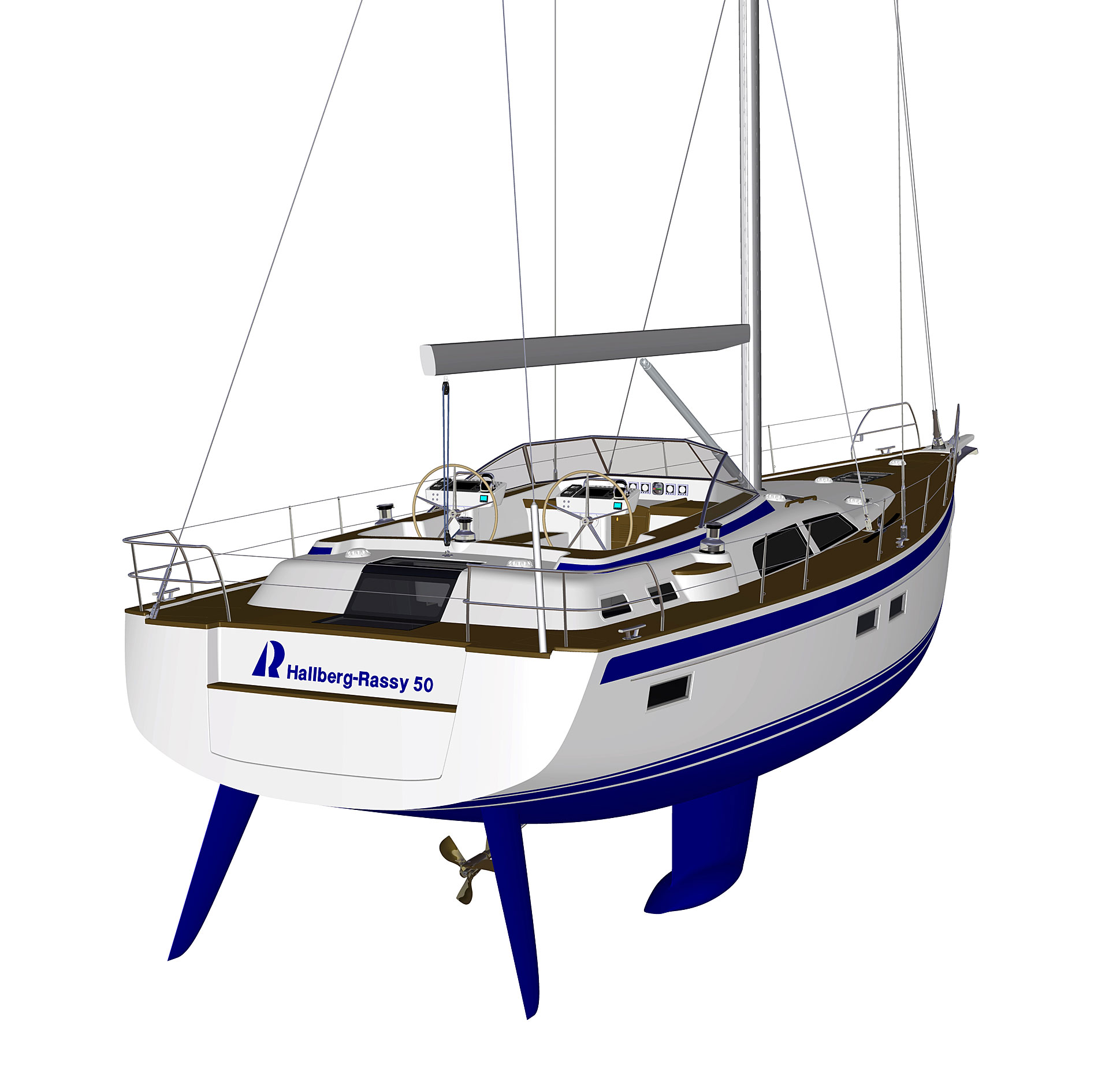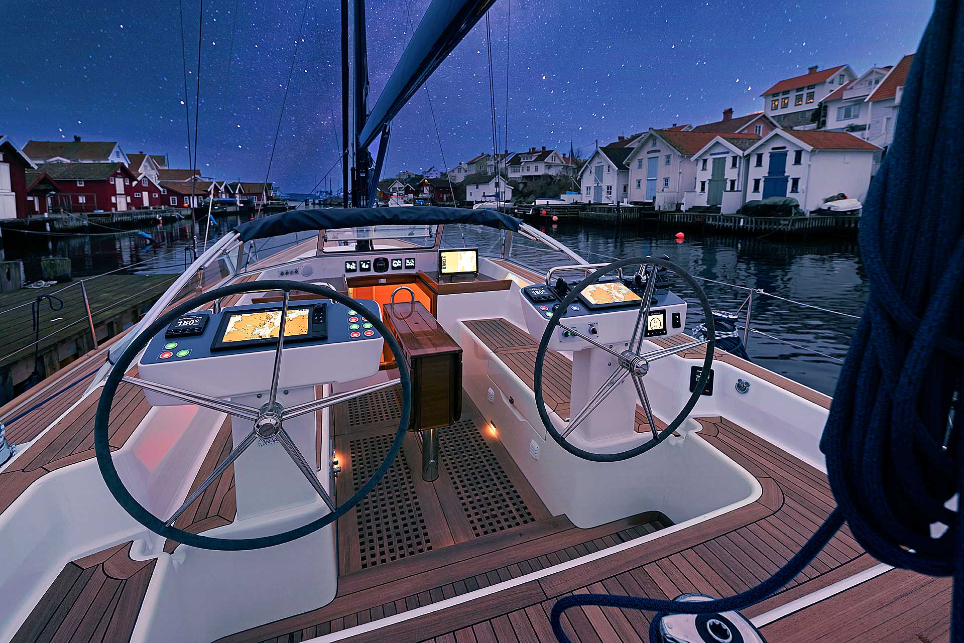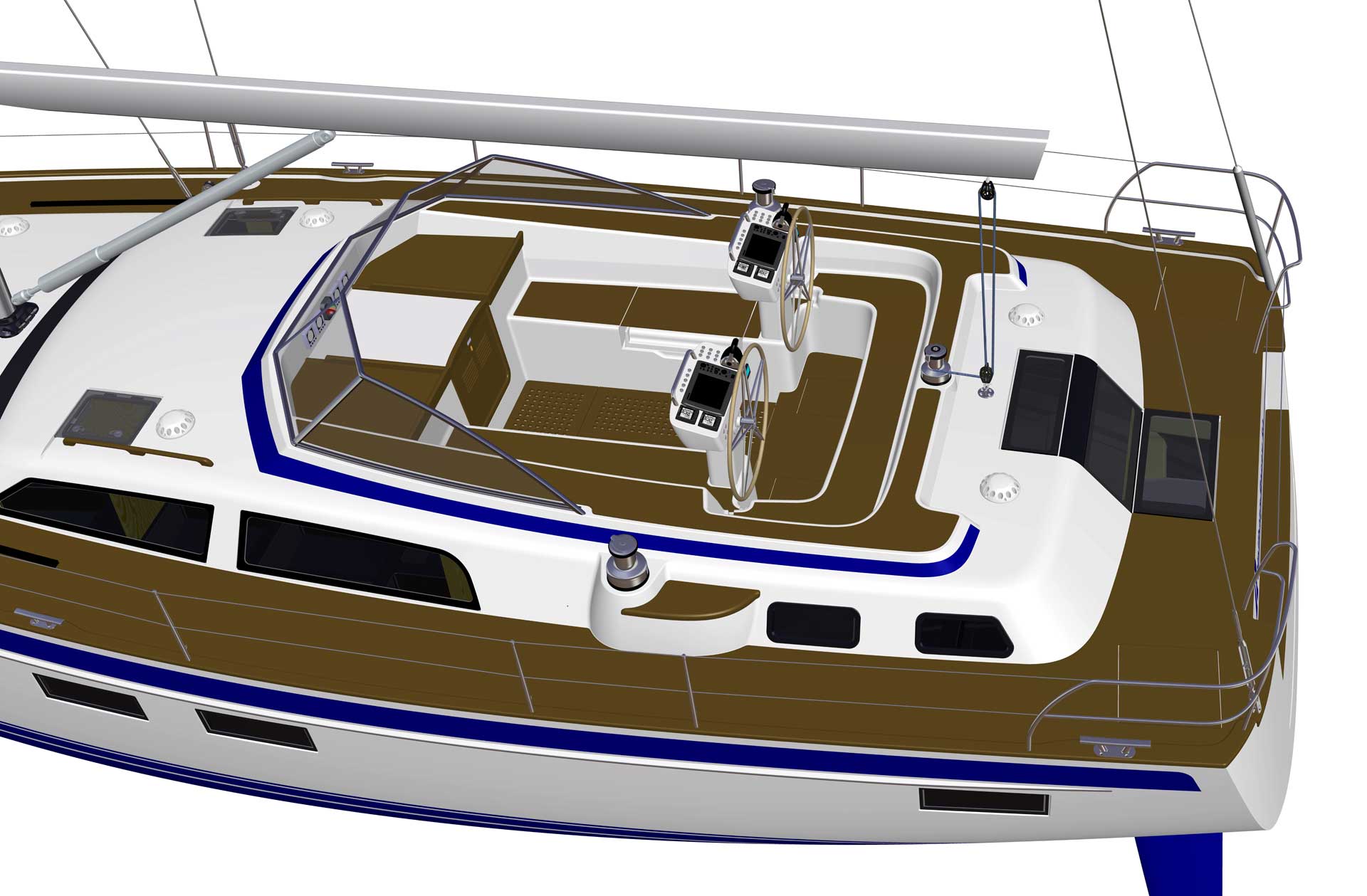 The steering system has twin rudders, superior both in terms of control when sailing, as well as pleasant vibration free motoring and also from a safety perspective.