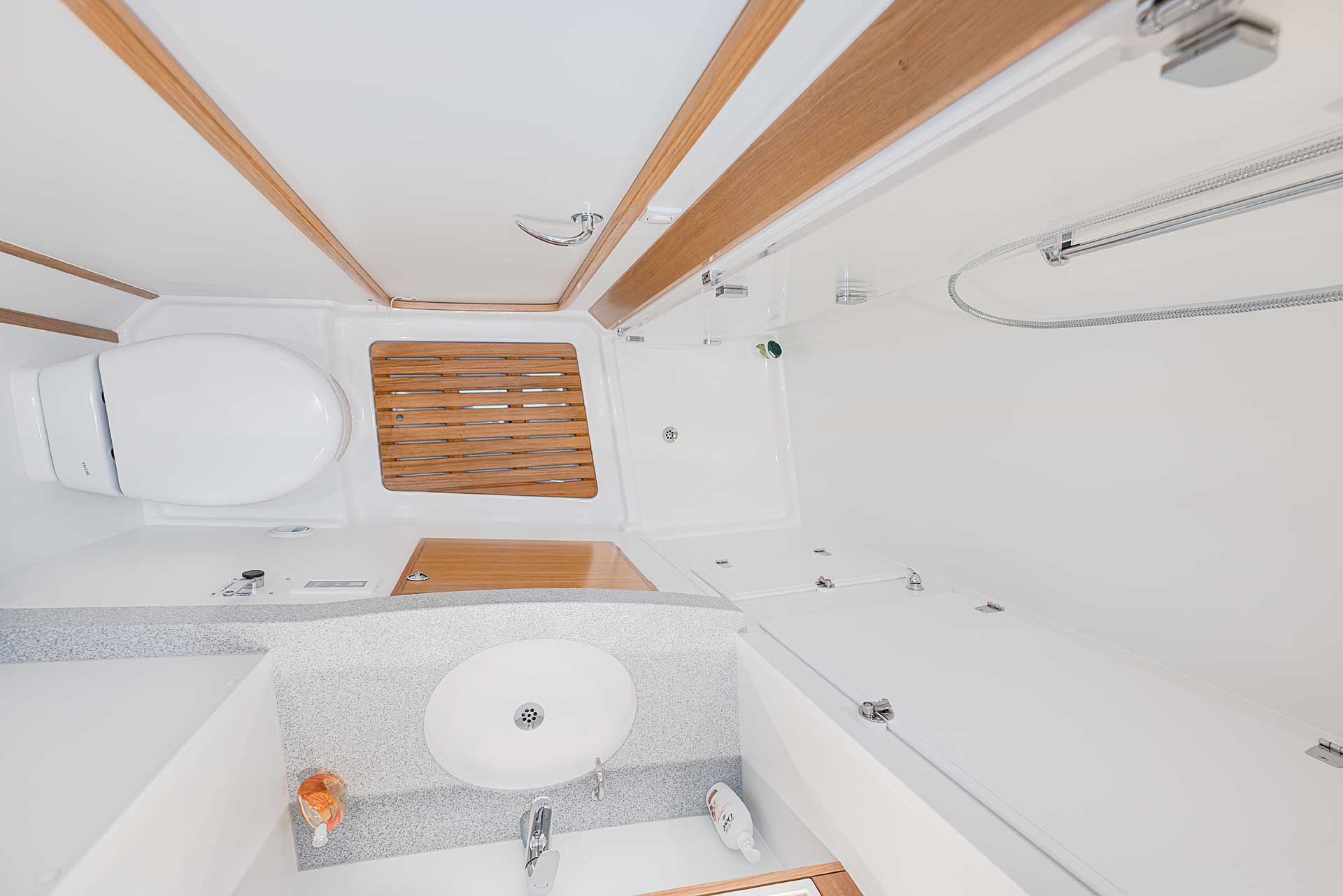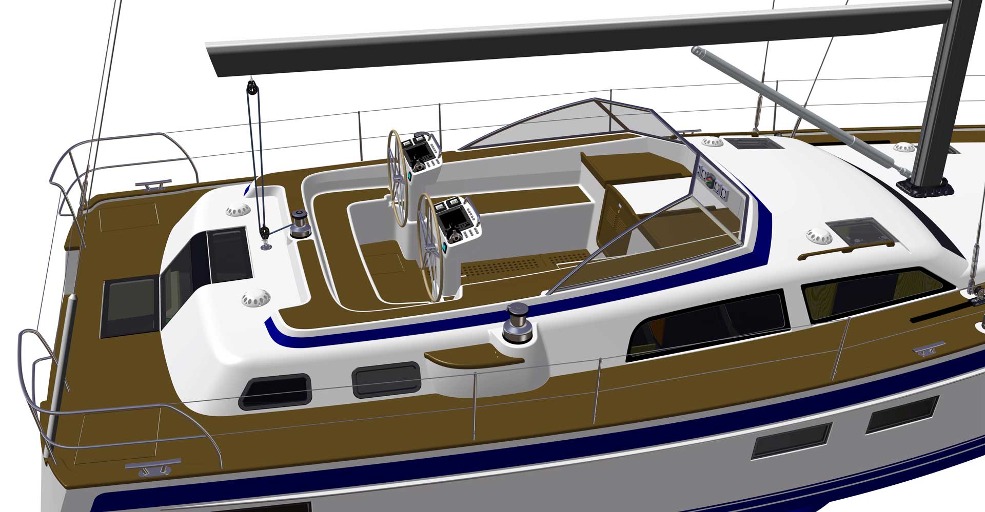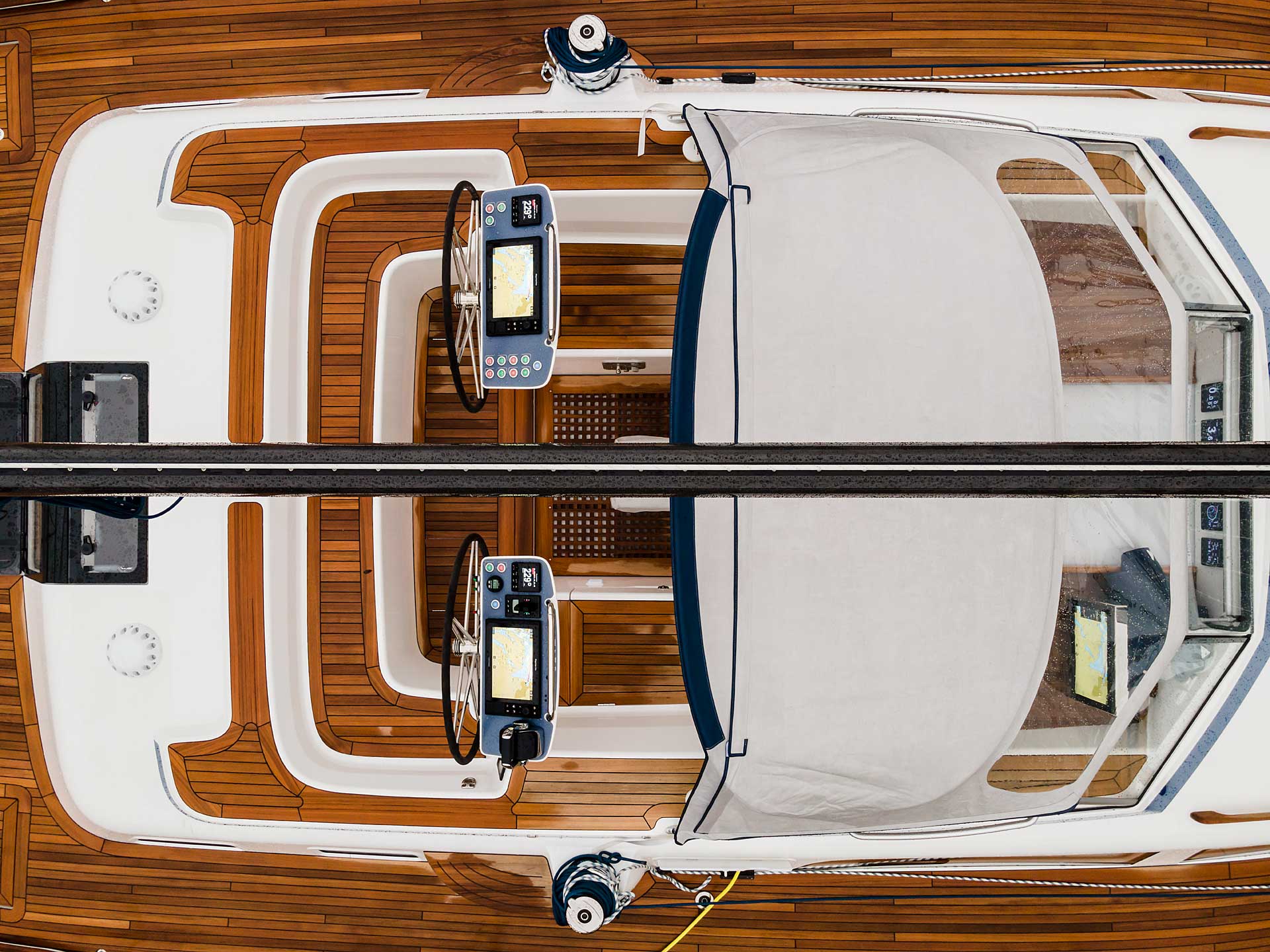 The steering system has twin rudders, superior both in terms of control when sailing, as well as pleasant vibration free motoring and also from a safety perspective.