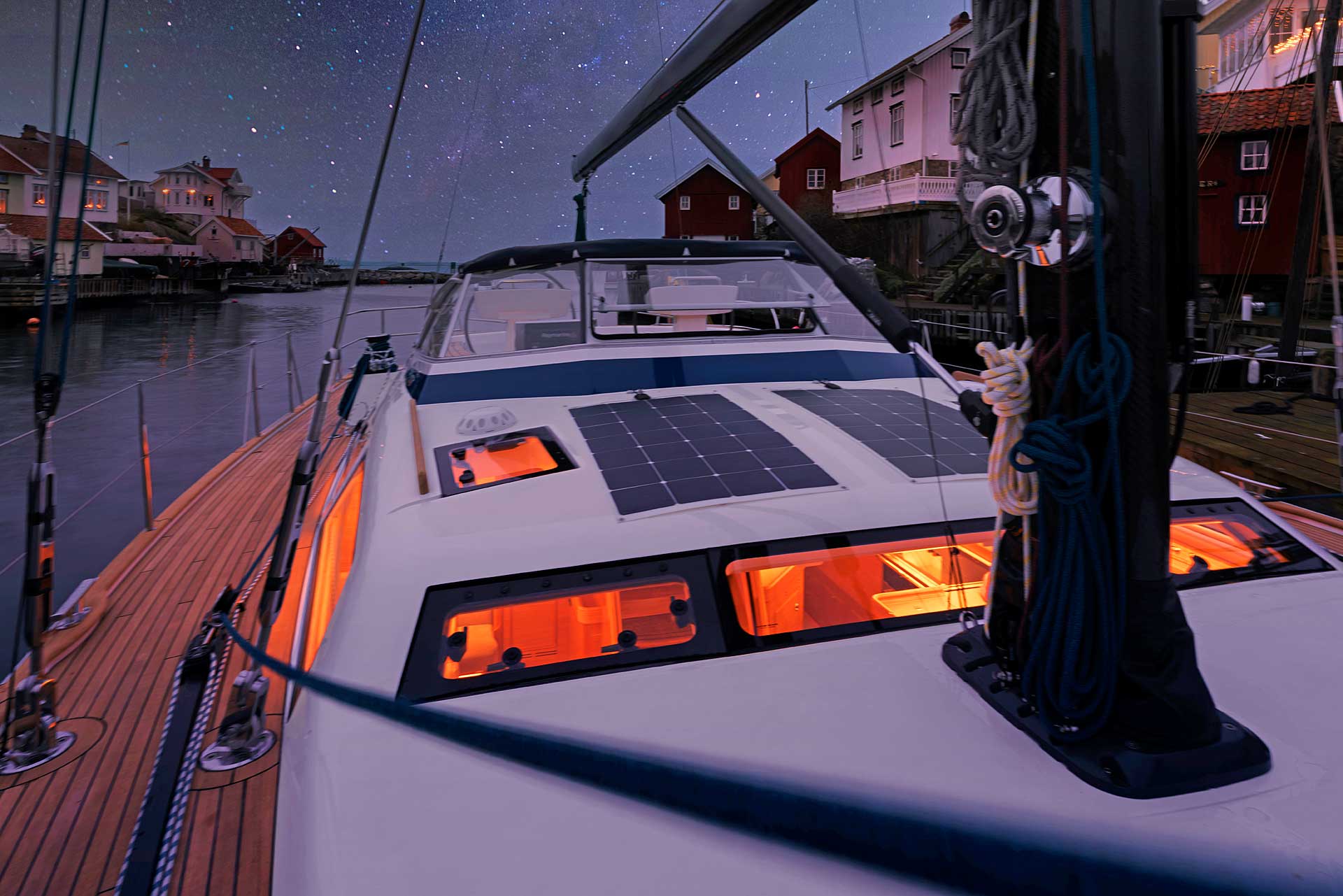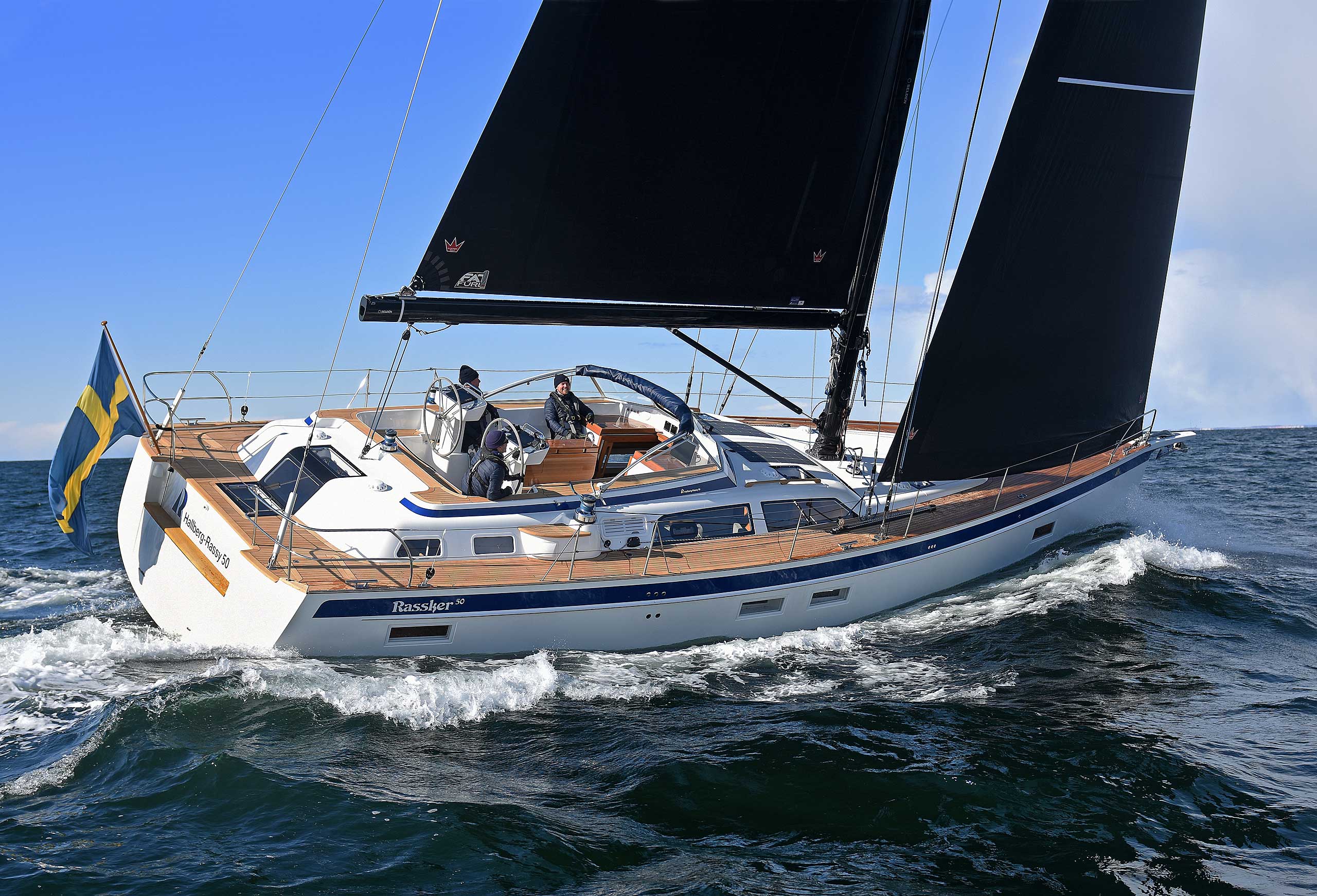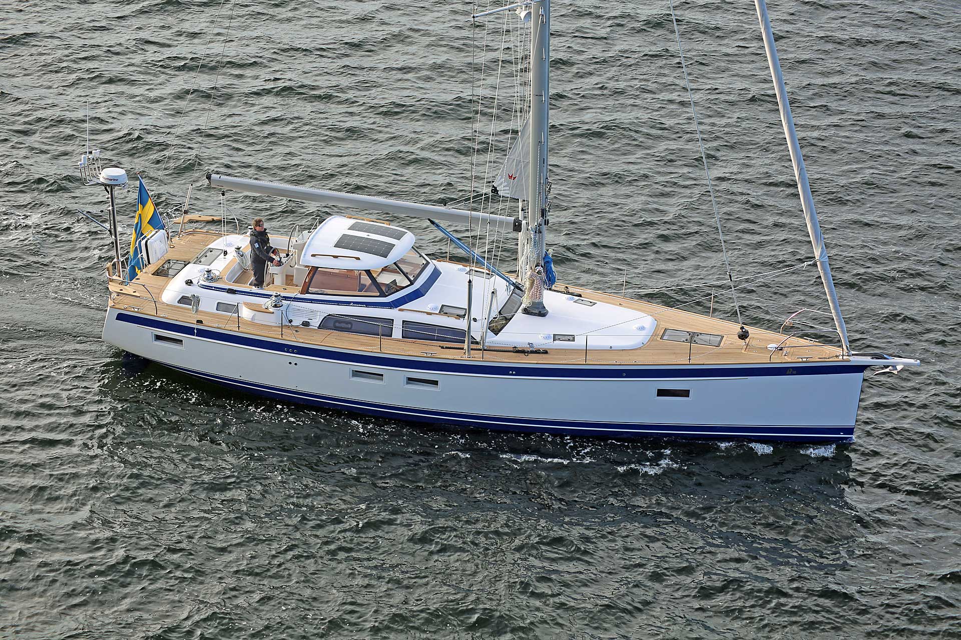 Hallberg-Rassy and Seldén are tweaking the concept of cruising by blending it with a great deal of performance. Carbon in-mast furling now takes push button performance to a completely new level. This set-up reduces the heeling and the weather helm to a minimum and improves up-wind performance. The lighter mast also makes for less pitching and pumping in choppy and big seas and the whole set-up will give a richer over-all sailing experience. Read more about it under News