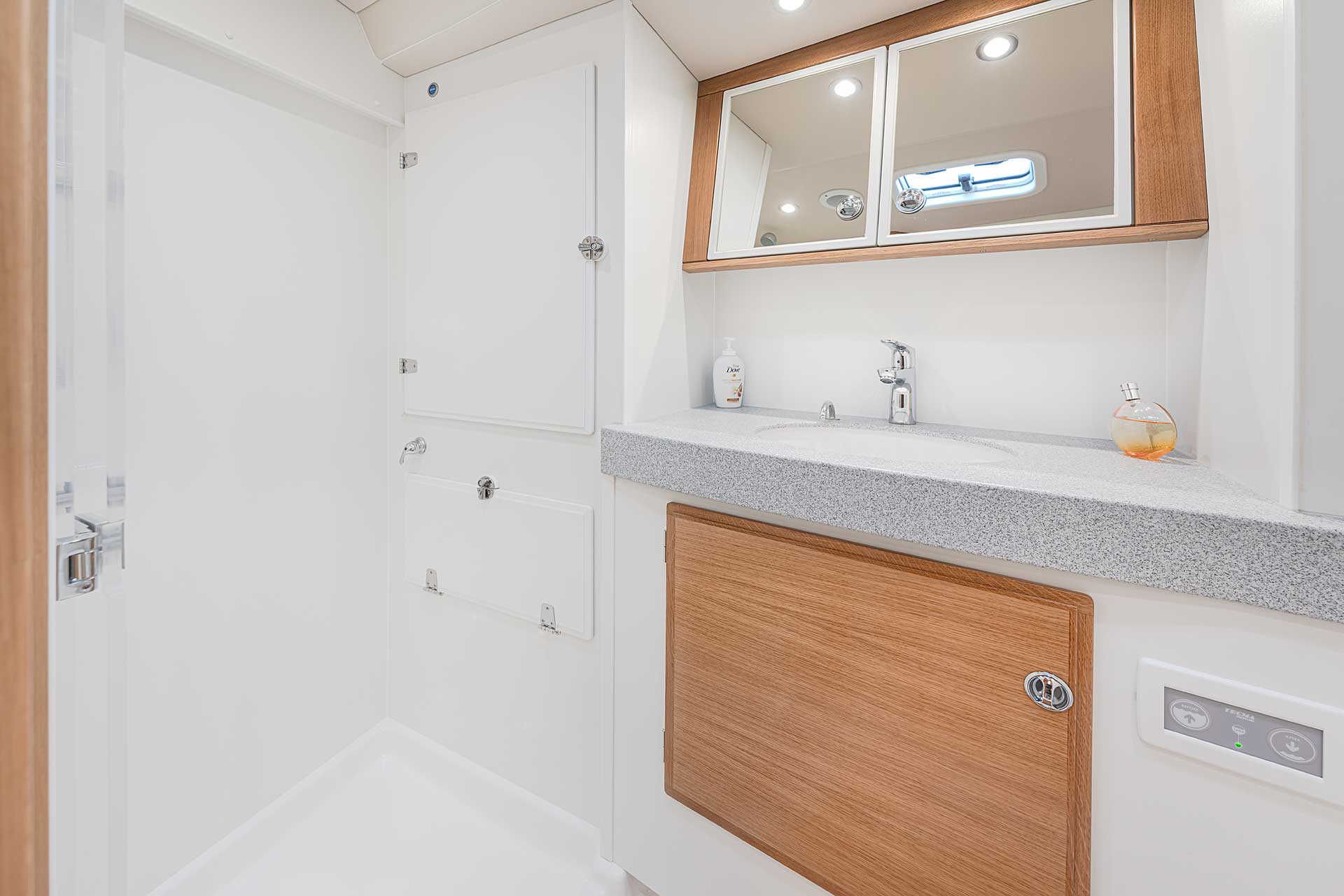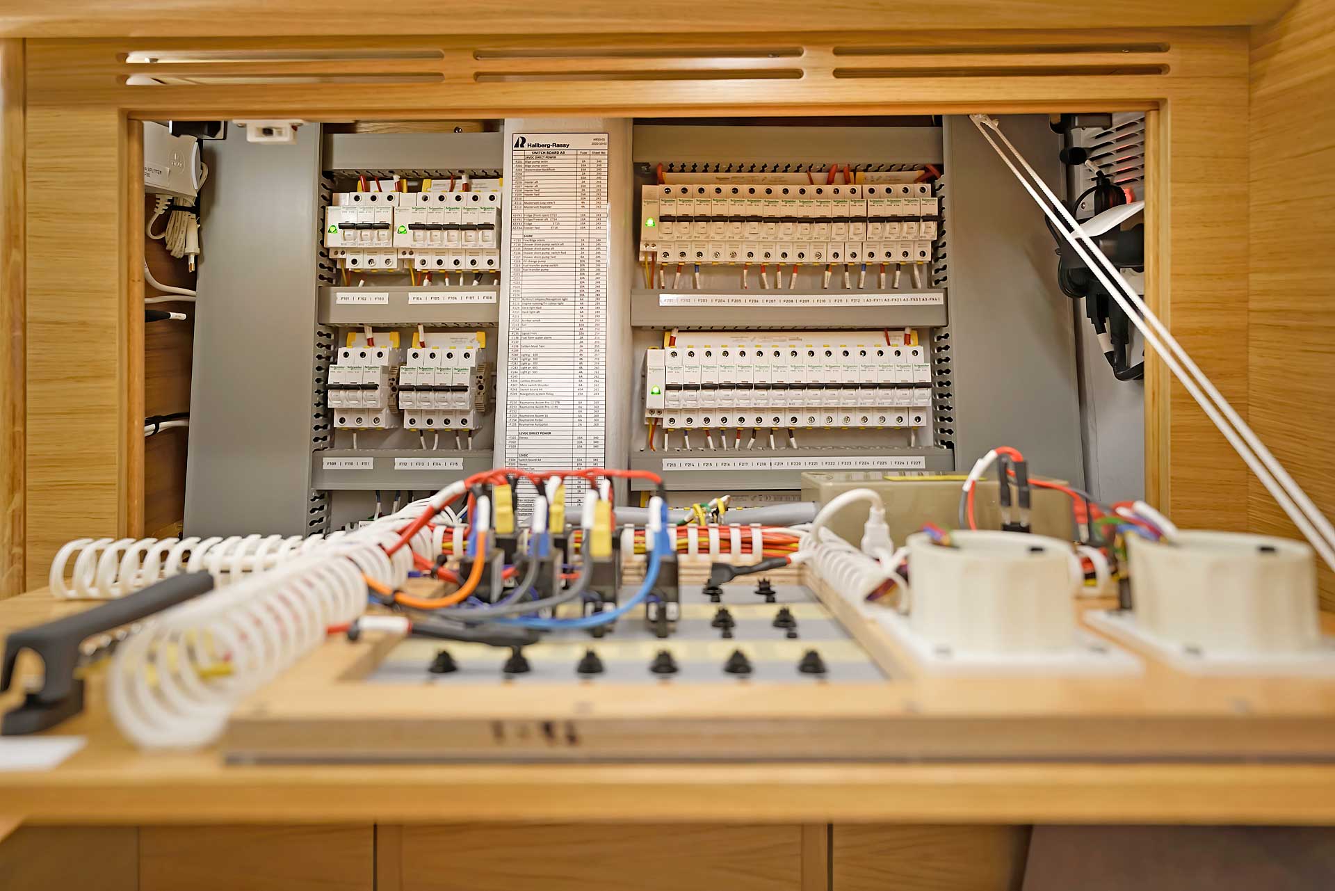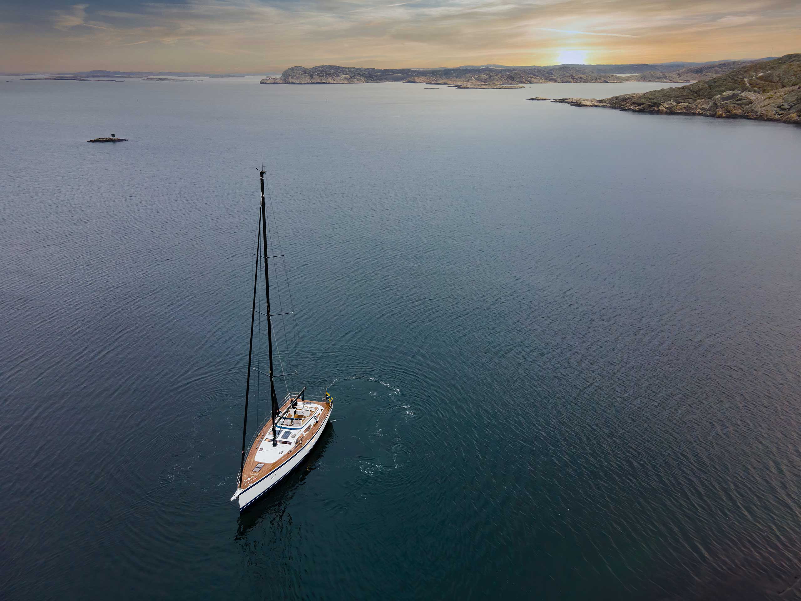 The sail away standard equipment list is very extensive, including for example electric in-mast furling and electric headsail furler, sails, teak deck, retractable bow thruster from Sleipner Side-Power, a 12 kW generator, a 110 HP main engine, electric cooking, fridge and freezer, launching and rigging at the yard, antifouling, fenders, mooring lines and a lot more.