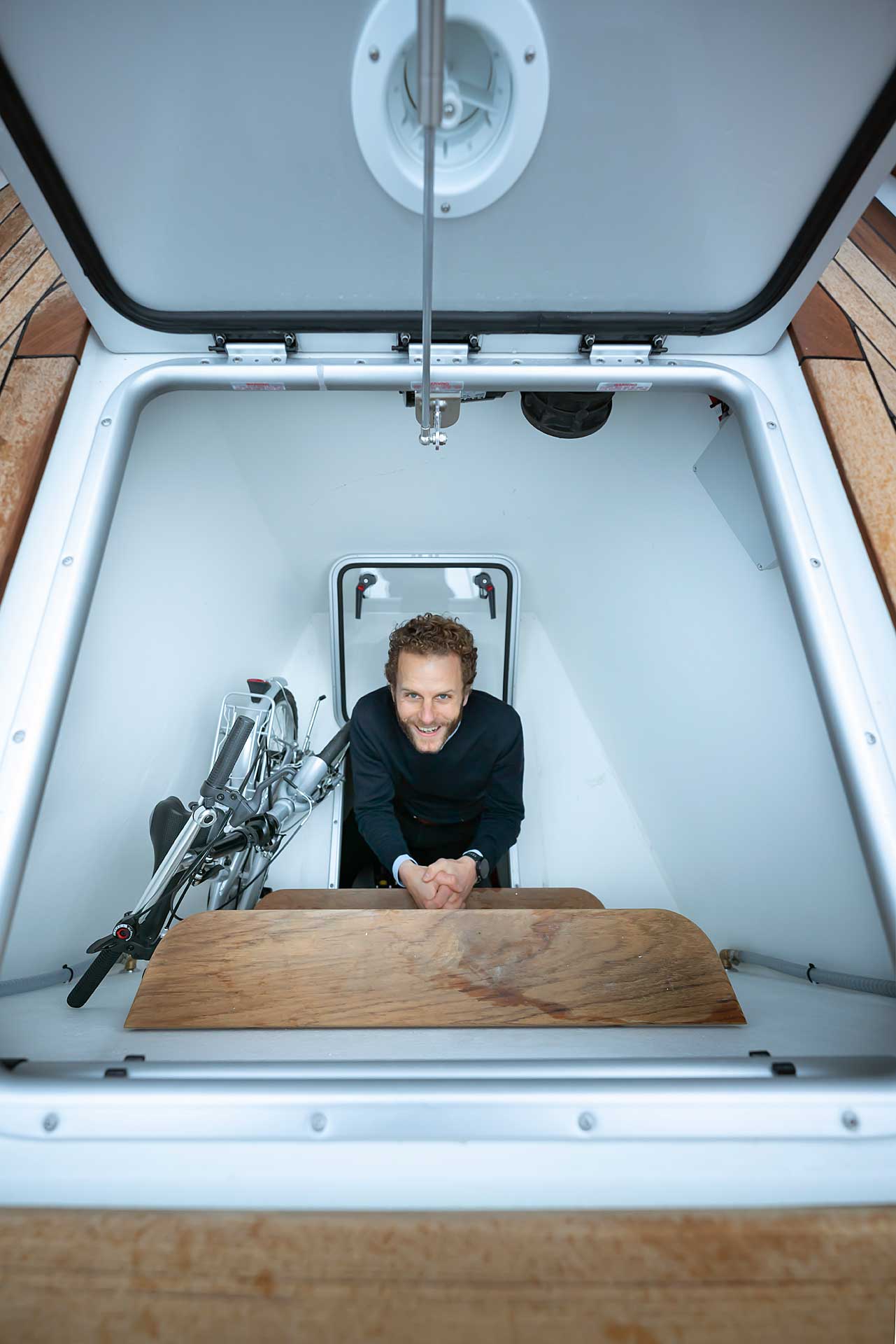 The deck storage is generous. There is not only an enormous deck locker between the forward cabin and the chain locker, there are also two top opening deck lockers aft, one locker in the cockpit and good storage for fenders and ropes also above the chain locker.